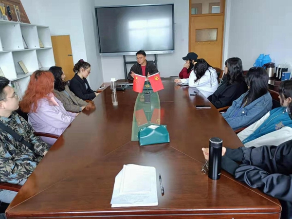 会议伊始,程松泉老师对少数民族学生关于党员发展、勤工助学、课题申报等内容的相关政策进行介绍。随后各位与会同学围绕在校期间个人学习与生活中的困扰依次发言,少数民族同学在学习中普遍面临着英语学习较吃力的难题、同时在课题参与方面存在着学院课题参与度较低的现象。程老师对每一位同学的疑问均进行了专业、细致的解答,并就同学们普遍面临的难题提供解决方案,并鼓励同学们就学习中的疑惑和困难积极寻求身边同学帮助。