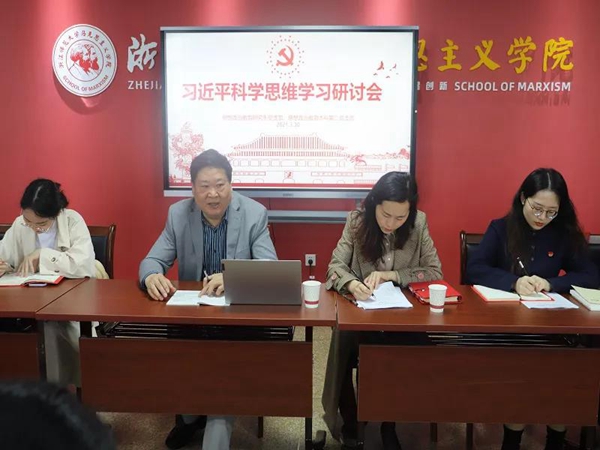 学习习近平总书记的科学思维,是党史学习教育的重要内容。为深入学习领会习近平总书记的科学思维,3月30日,教工第一党支部、思想政治教育研究生党支部和思想政治教育本科第二党支部在学院706会议室举办“习近平科学思维学习研讨会”。浙江省马克思主义理论重点学科带头人、校马克思主义一级学科硕士点负责人郑祥福教授出席研讨会。研讨会由学院党委副书记张晶主持,郑祥福教授主讲。