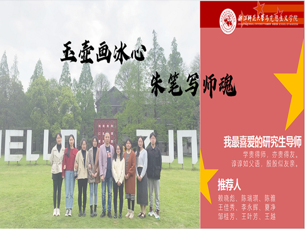 以德施教,身体力行。为师,他教育有方、诲人不倦,以厚德载物的精神培育师门弟子。从教十余年,身兼教学、科研、管理多职,从不吝惜在物质和精力上对弟子的培育和支持,鼓励师门弟子在不同的领域奋斗拼搏。他勤勉铺路,亲自带队指导学生科研课题研究,展开田野调查,与学生同吃同住。曾指导学生团队获第十六届“挑战杯”大学生课外学术科技作品竞赛全国三等奖、浙江省特等奖,获“青年中国行”全国30强课题优秀指导教师称号。