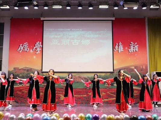 维吾尔族舞蹈《亚丽古娜》充满异域风情,曼妙的舞姿扣人心弦,随着音乐摇摆的红色长裙轻快灵动,向观众展现了新疆人民如火般的热情。