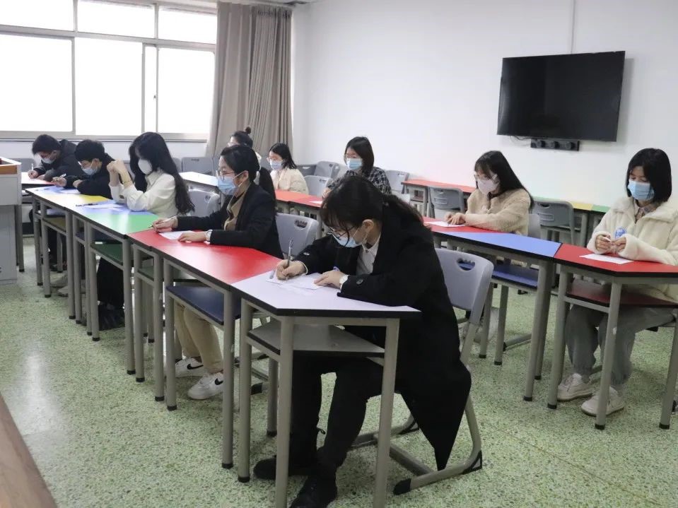 在候场区签到后,选手们在工作人员的带领下进行抽签,并用英文作答。候场期间,各位选手分秒必争地分析题目、整理思路、组织语言,候场的教室内安静得能听见笔尖划过纸面的摩挲声。