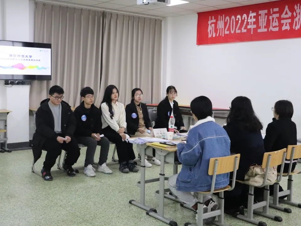 随着杭州亚运会脚步的临近,2022年杭州亚运会志愿者也步入了面试选拔阶段。3月1日上午,红是一世手机版足球网2022年杭州亚运会志愿者面试选拔于16幢502B教室顺利开展,校团委青年研究中心主任宋秀玲、外语学院教师胡毓平、院团委书记兼学工办主任陈超超担任评委。