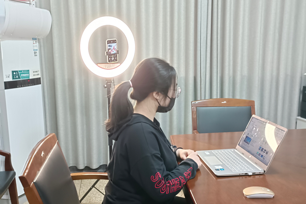 (四)“全套化”考务支持。学院专设复试间,并提供手机支架、补光灯等面试设备,志愿者全程做好服务,目前累计提供40余次线上考务支持。