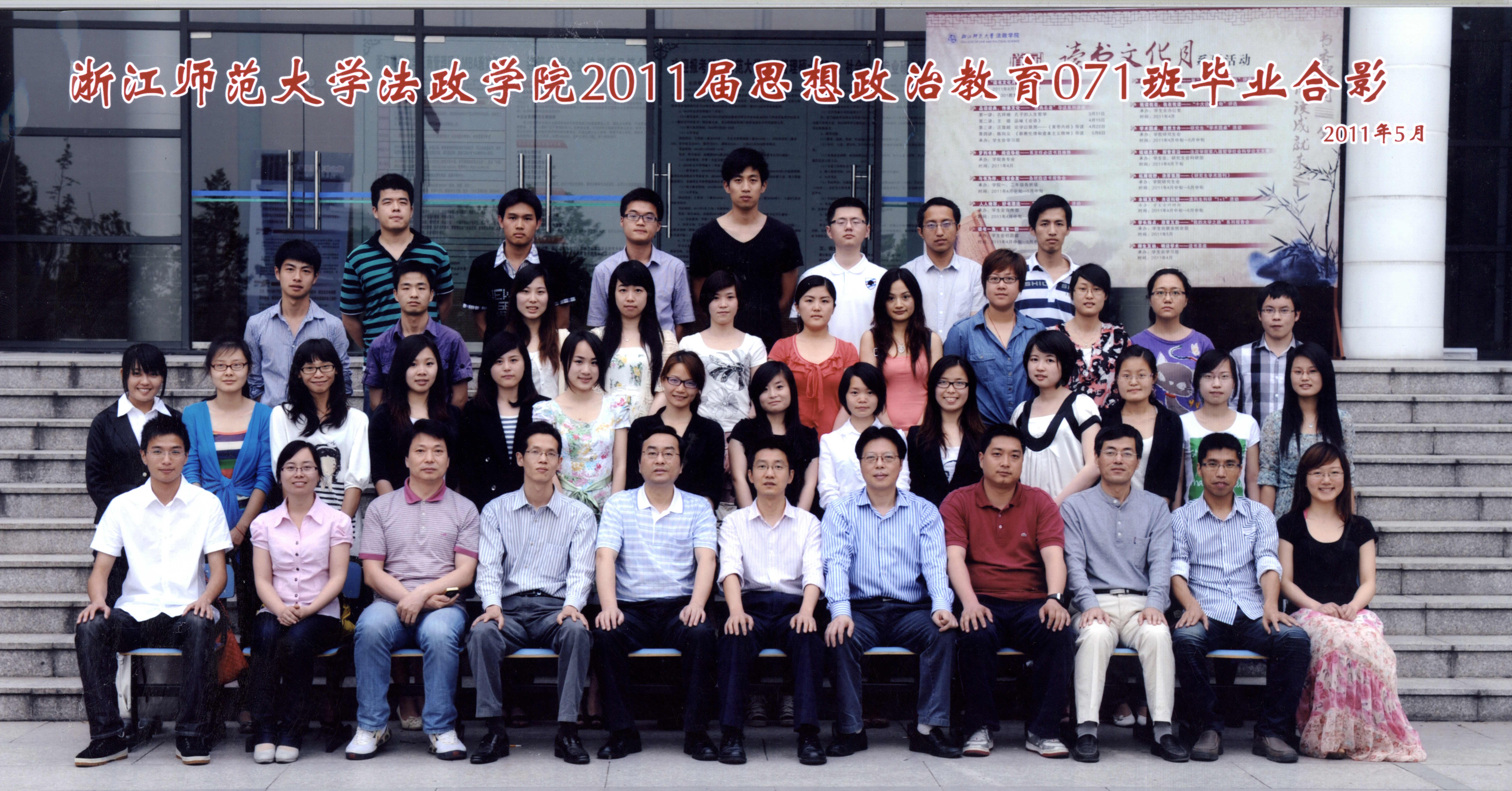 2007 | 政教071班 | 2011 | 蔡燕萍 林 洁 孙 妃 赵 南 王海敏 戴慧丽 林 烨 王凤英 周海英 王 辉 丁小毕 刘春艳 谢小琴 周琴月 吴介权 高爱莉 卢益飞 杨路楚 朱 莹 吴自仁 过萍萍 骆雯洁 叶 青 何小江 袁航铤 洪丽莉 马秋艳 余玉玲 江 城 臧衍杰 洪 旭 邵海霞 张 莹 赖 勇 李 杰 胡 敏 沈田颖 张 瑜 | |