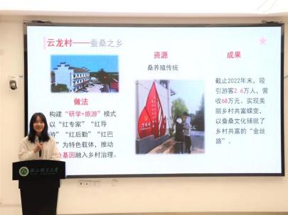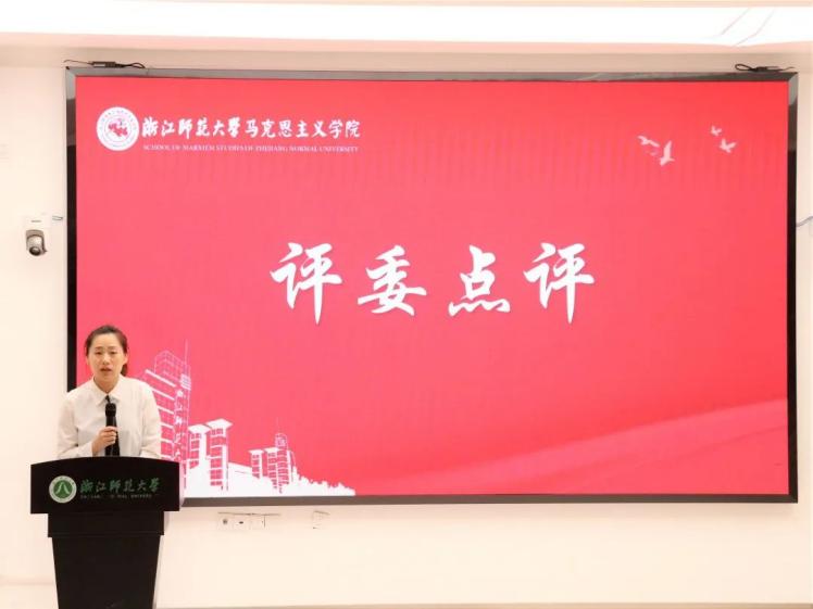 沈超老师对本次大赛进行点评。她用“感同身受”和“热血沸腾”两个关键词高度肯定了本次红色微宣讲大赛的成功。在内容上,她认为选手们都能将宏大主题与自己的身边人和事结合起来,非常契合“‘八八战略’在身边”的宣讲主题;在形式上,选手们将书面语讲成知心话,用赋有时代性的语言,让本次宣讲既保持了原味,又增添了趣味。最后,她提出希望同学们能以本次微宣讲大赛为契机,一方面继续加强理论学习,提升知识素养;另一方面,应利用自己的专业特长,积极投身到宣讲活动中去。