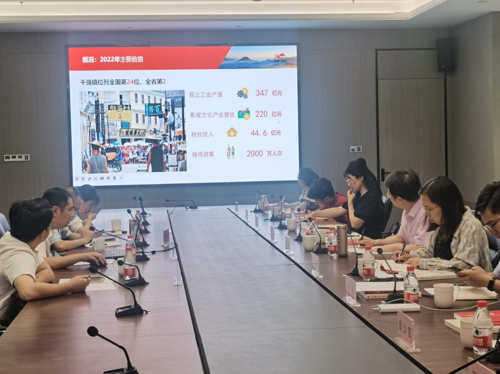 上午,课题组在考察智慧横店管理服务指挥中心后展开了座谈与交流。40多年来,横店镇在上级党委政府的领导下,坚持“共创、共有、共富、共享”的理念,走出了一条经济腾飞、居民共富的高质量发展道路。