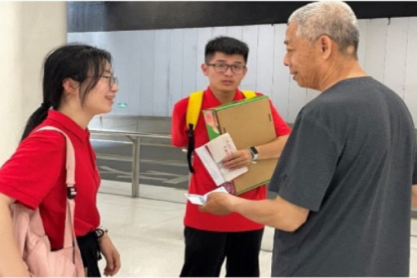 走过如时空隧道般独具特色的站道,实践队成员翻阅着与车站相关的“城市电车游览图”,进一步了解嘉兴的有轨电车和线路概况,惊叹于其完善的交通体系。等车期间,实践队成员在与老爷爷聊到了如今车站的变化,他毫不吝啬地赞赏了现代化的车站,但也与此同时指出了“10块钱没有地方找零,有点不方便呀,也不会用手机支付”等现象,让我们不禁反思在现代化进程中,交通技术在便捷化、智能化的过程中也忽视了对受惠对象的全面把握,如何缩小城市发展与中老群体之间的距离感引发了实践队成员深刻的思考。