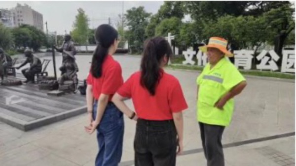 环卫工陆大爷每天的工作是打扫与清洁公园,在凤桥镇政府的支持与帮助下,他搬到了附近的新房子里。“现在周边环境更美了,生活也更好了”,他高兴地和实践队成员们分享。同时他也提及,在文化体育公园,每逢凤桥镇文艺汇演或是其他什么活动的时候,园中的广场就会特别热闹。