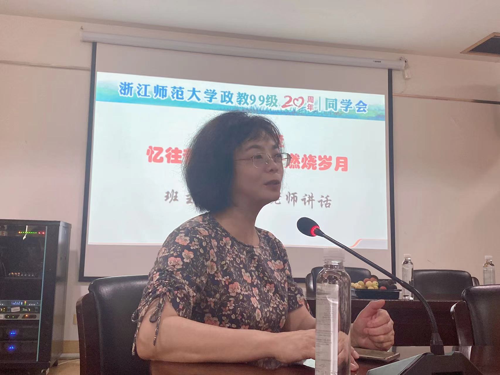 同学情谊不变,师生情谊永恒。政教99级班主任蔡应妹老师走上讲台娓娓道来,令台下的同学们不禁忆起当时课堂的点滴。蔡老师感谢同学们组织了一场如此盛大的同学会,意义非凡,并分享了身为教师的幸福感和满足感,同时也祝愿同学们在各行各业再创佳绩!