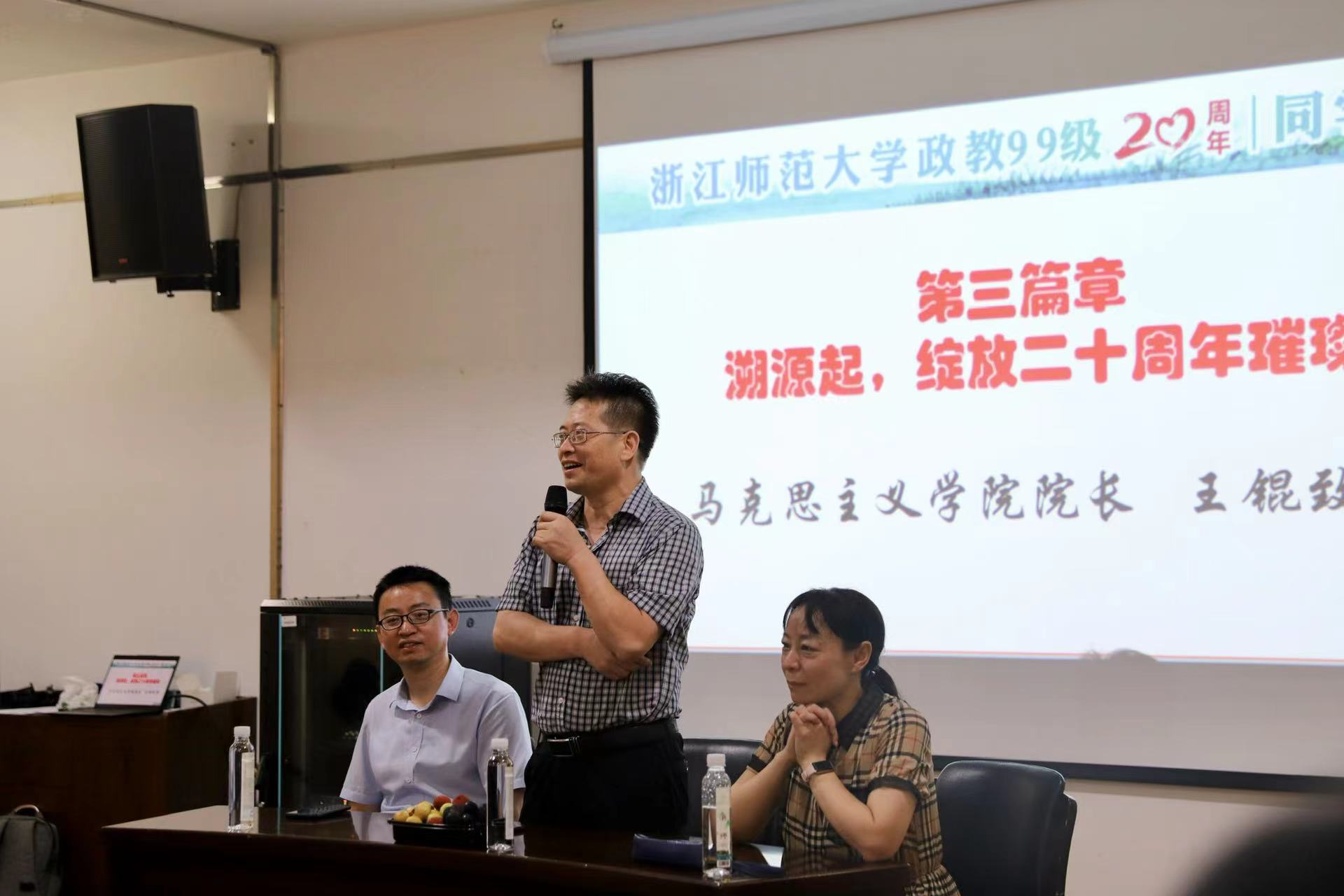 王锟院长对同学们返校表示热烈欢迎,并表达了毕业20载重聚浙师的欣喜之情。党委书记徐颖向校友们赠送学院礼物,表达了学院对同学们的惦念。副院长姜玉峰赠校友卡,欢迎同学们常回家看看。