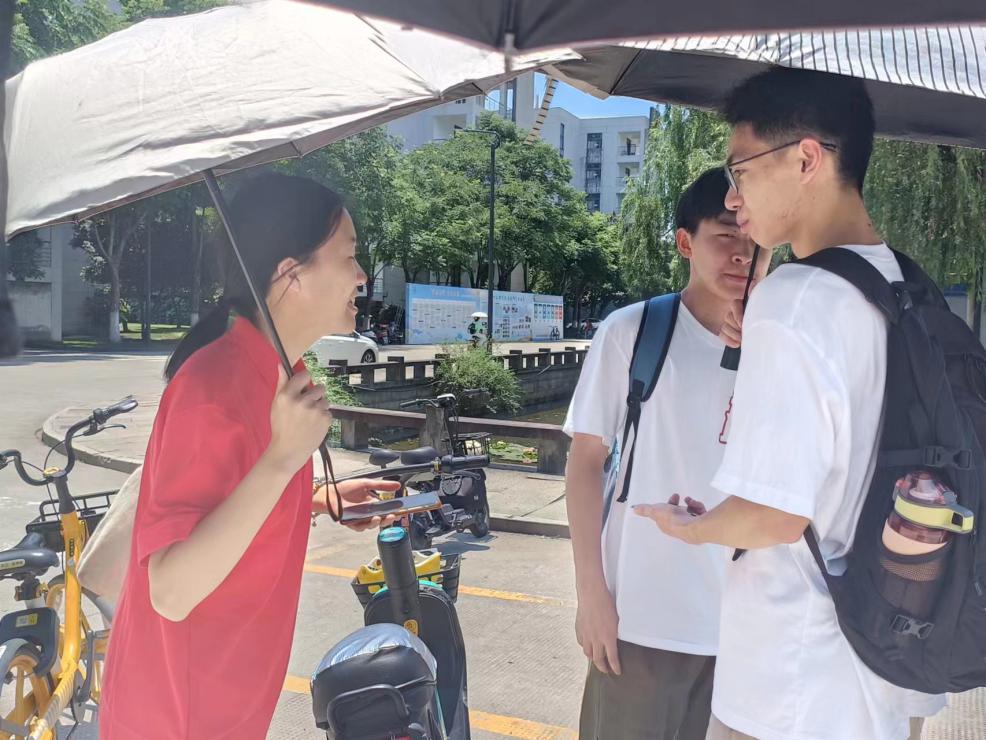 在宁波大学东校区,小组成员在宁波大学进行了气候变化素养问卷的发放。问卷主要考察了大学生环境保护意识和相关实践,引入环境保护的原则以及获取生态信息的渠道等,同时融入身边人对于大学生实施低碳行为的看法和做法。