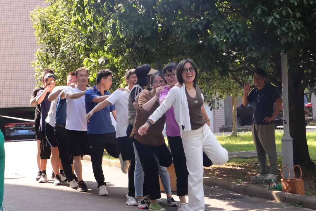 一群人、一根绳、一股劲、一条心。双方教师们压低重心,紧握麻绳,咬紧牙关,涨红了脸,配合着口号,铆足劲儿将绳子向后拉。场上加油声、助威声此起彼伏,激烈的比赛气氛一浪胜过一浪。