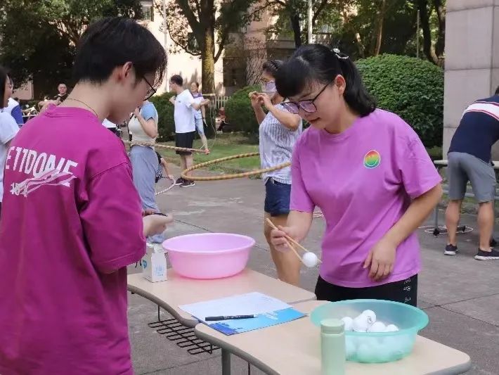 托球行进是平衡与速度的挑战,既讲求技巧,又注重团队协作。赛前,教师们摩拳擦掌,积极模拟练习,培养手感与默契。比赛号令一发,教师们小心翼翼地控制着球拍,快速向前跑去,营造出热闹非凡的活动氛围。