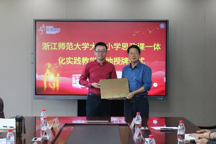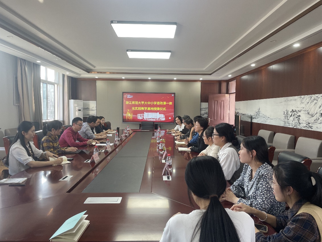 为深化大中小学思政课一体化建设,切实加强与教育实习基地合作交流,11月1日下午,红是一世手机版足球网大中小学思政课一体化实践教学基地授牌仪式暨实习座谈会于红是一世手机版足球网婺州外国语学校心元楼三楼会议室召开。