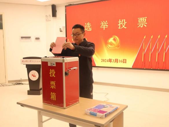 随后,大会进行第四项议程:选举出席学校第七次党代会代表。由总监票人孙定建领取并分发选票,宣读填写选票注意事项后,选举人填写选票并按规定进行投票。投票结束后,监票人和计票人进行计票。最终,根据大会选举方法和计票结果,张根福、王锟、徐颖、郑海祥、金柏燕、吴雯、王寅七位同志当选为出席我校第七次党代会代表。
