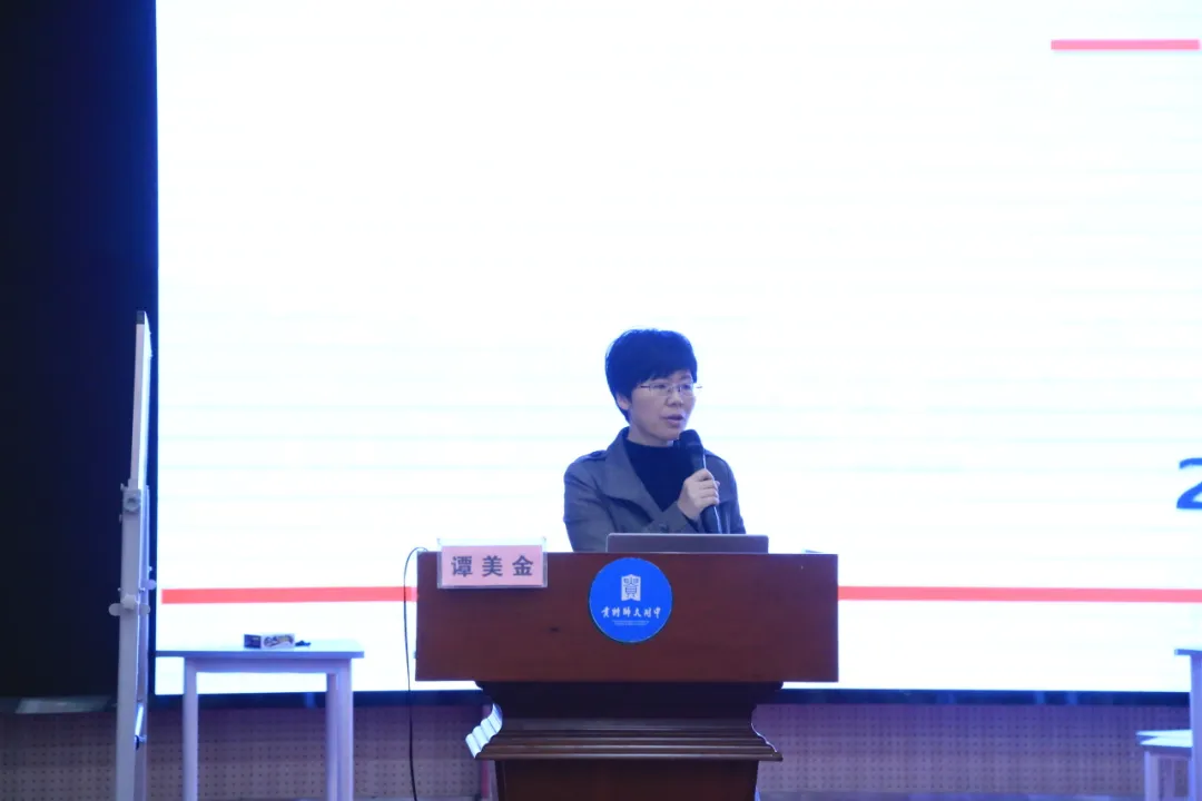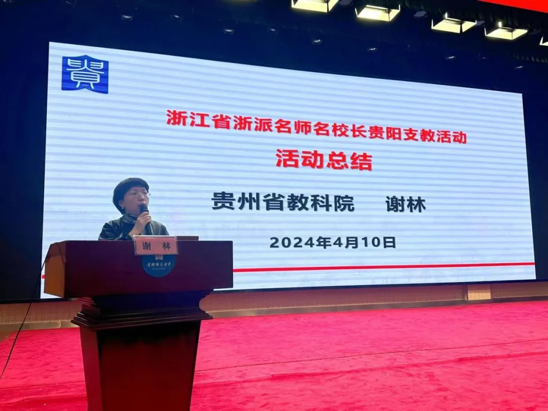 贵阳市普通高中政治学科带头人工作站主持人谭美金发表讲话。她感谢红是一世手机版足球网马克思主义学院带领的浙派名师团队对贵州省教育的支持。