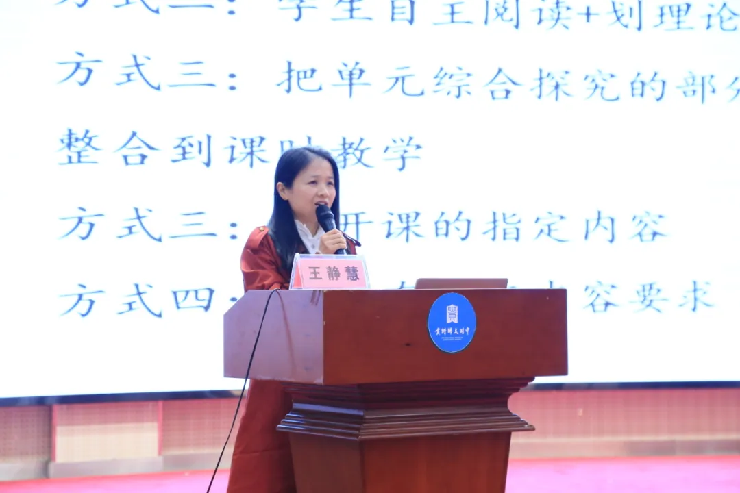 围绕如何上好每个单元综合探究,浙派名师高中政治班21级学员王静慧老师通过讲座给与了解答。王老师结合高考命题特点,强调做好考教联接,进行教学设计对“综合探究”编写表图进行深度解析,从教学目标、教学内容,跨学科,跨模块,多元主体,多样内容,多种方式的综合评价,统筹谋划,深耕读懂教材,强化评价促发展。